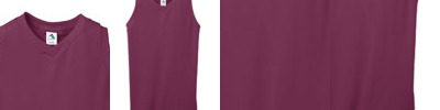 50% polyester/50% cotton jersey knit; Ladies' fit; 1x1 rib-knit V-neck collar and armholes; Double-needle hemmed bottom;