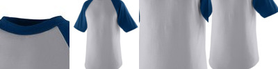 - Contrast color raglan sleeves and 1x1 rib knit collar
