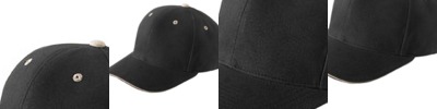- Contrasting sandwich bill, sewn eyelets and top button
