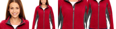 100% poly anti-pill corded textured fleece, 7.2 oz./yd2/245 gsm; CONTRAST: 100% polyester french terry, 7.7 oz./yd2/260 gsm; inside storm placket with chin guard; brush tricot-lined pockets; front, lower pockets, and sleeve pocket with reverse coil zippers; coverstitch details; audio port access through inside left pocket;